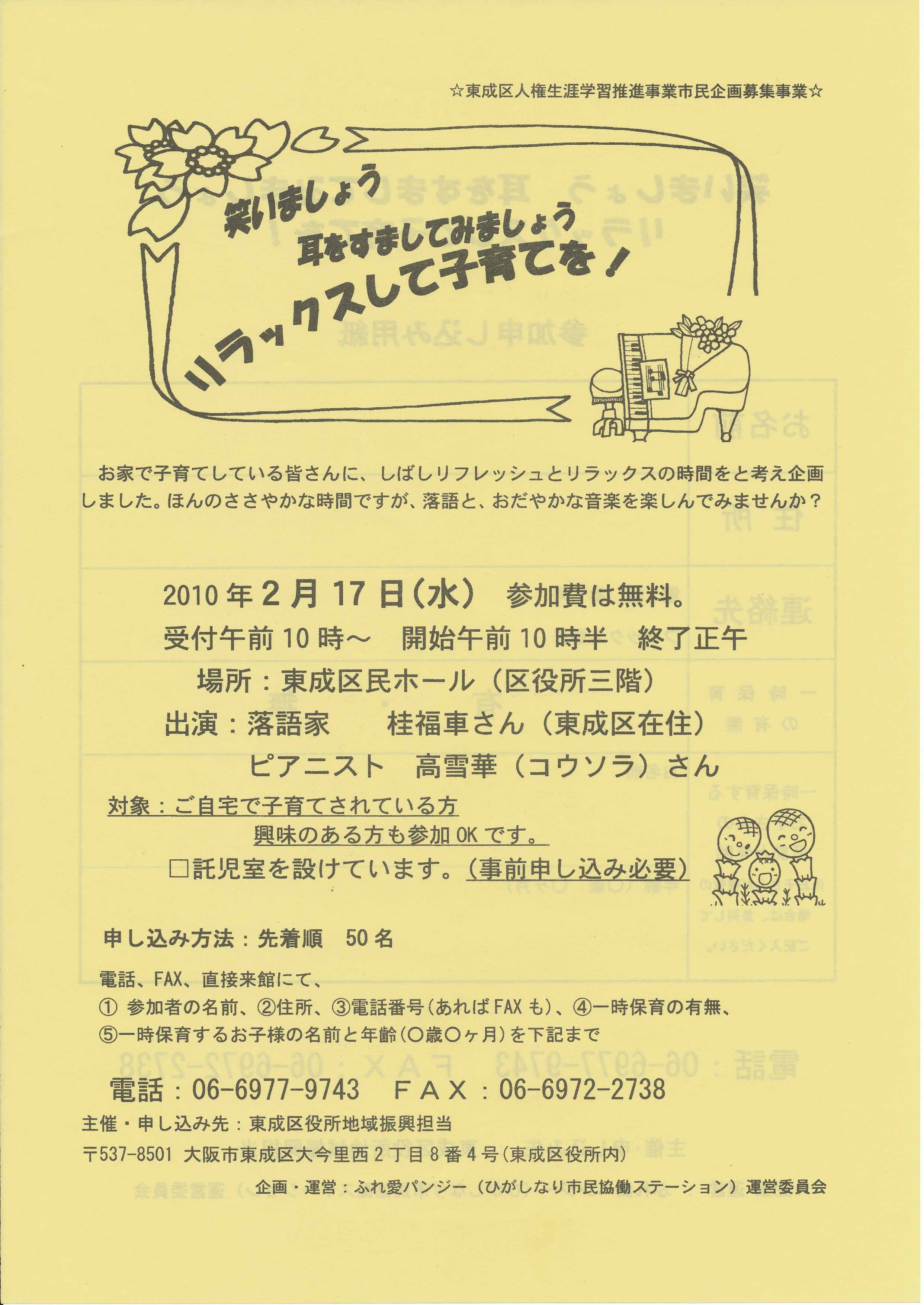 企画・運営: ふれ愛パンジー(ひがしなり市民協働ステーション)運営委員会
