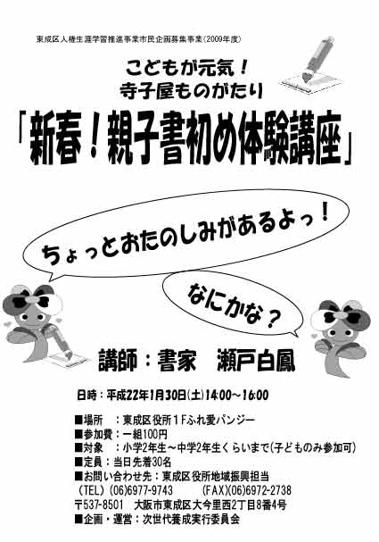 1月30日に14時から、ふれ愛パンジーで親子で書初め体験講座が開かれます。