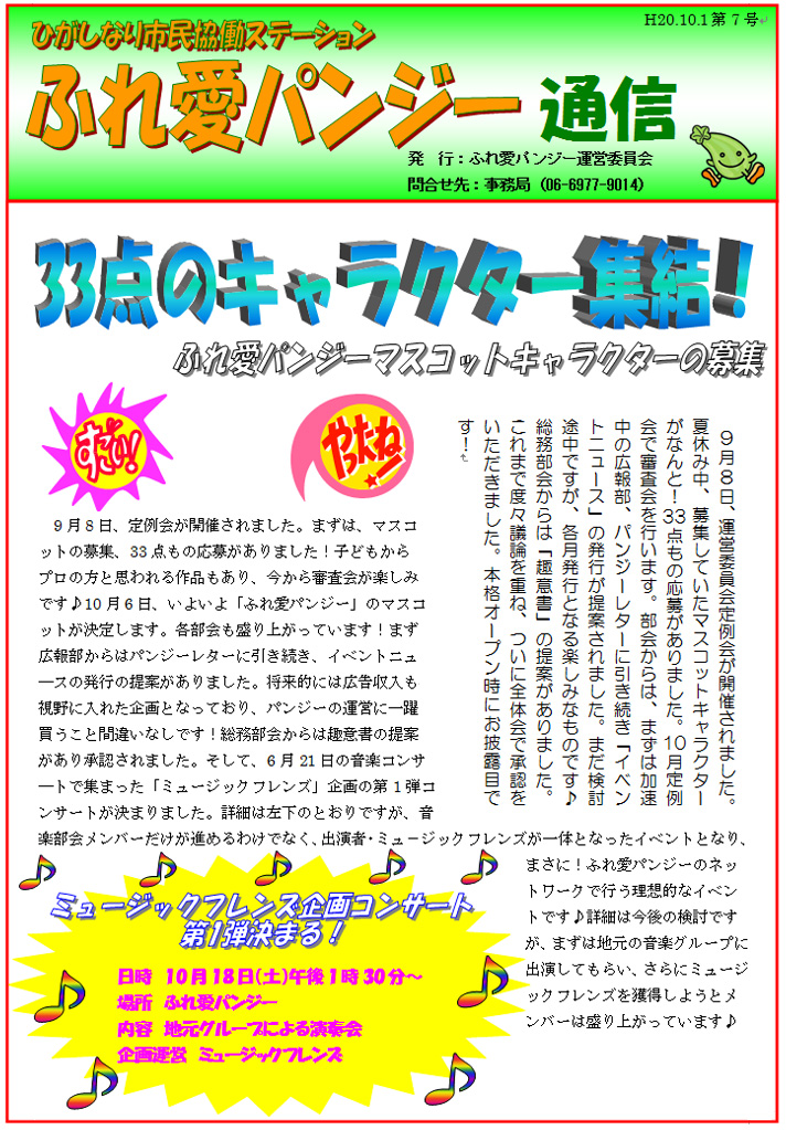 「ふれ愛パンジー通信」10月号(第7号)
