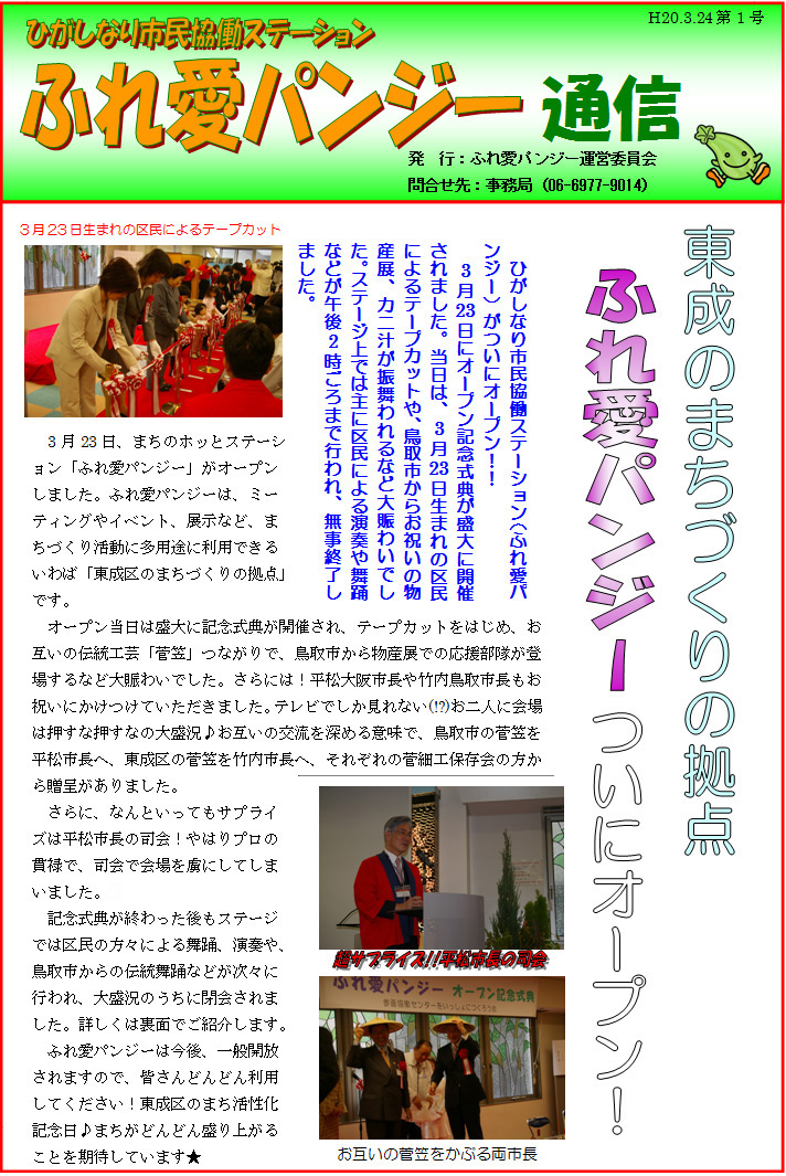 「ふれ愛パンジー通信」3月オープン記念号(第1号)