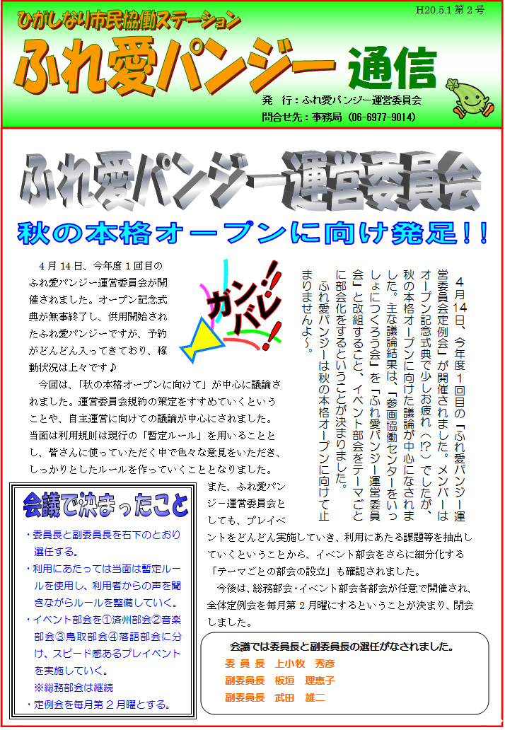 「ふれ愛パンジー」でのイベント情報や報告、運営委員会の活動など。