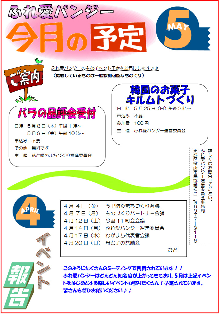 ひがしなり市民協働ステーション「ふれ愛パンジー」の情報をいち早くお届けする
