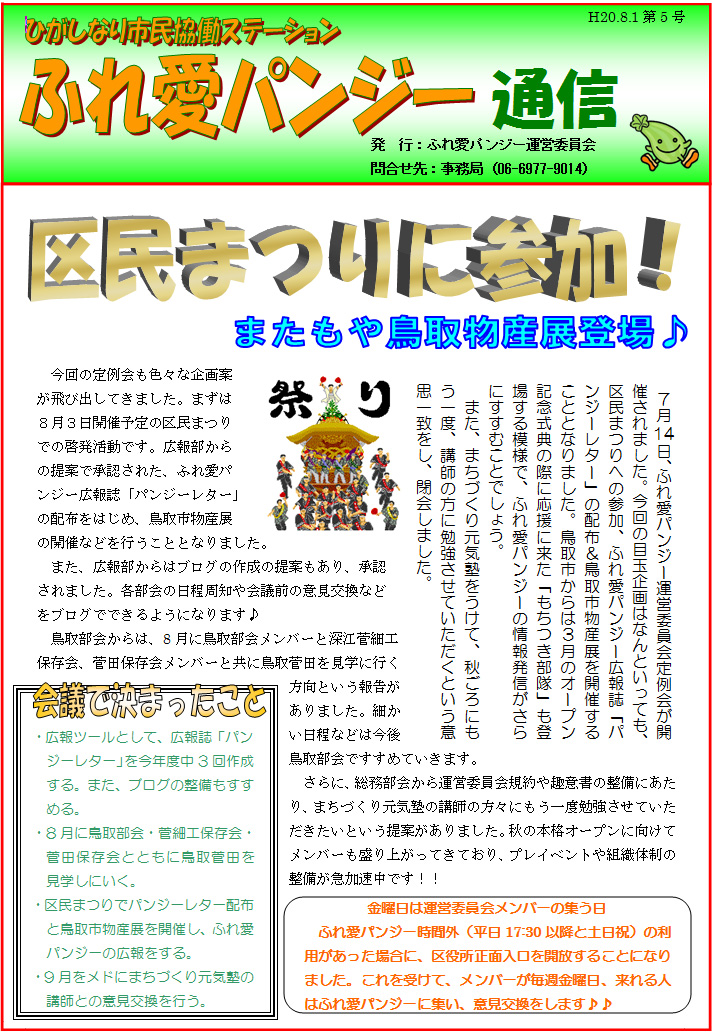 「ふれ愛パンジー通信」8月号(第5号)