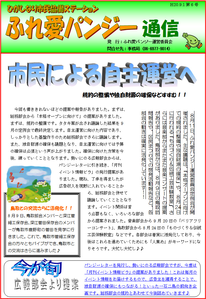 「ふれ愛パンジー通信」最新9月号(第6号)